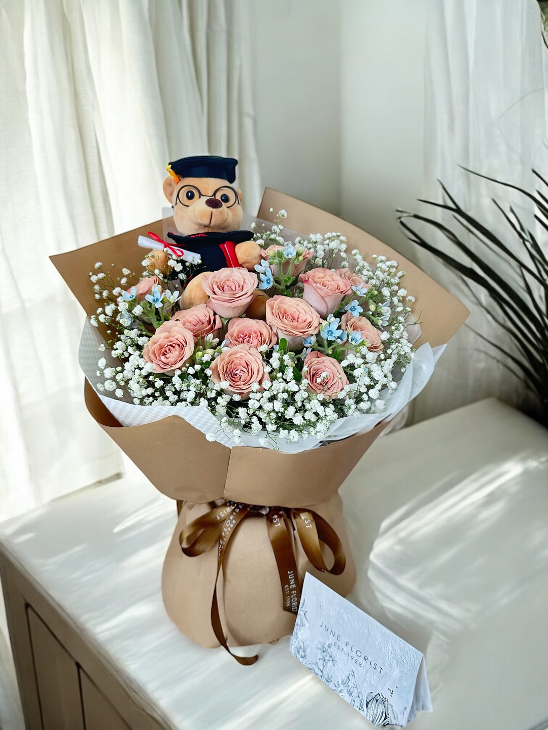 Yes, you can! Many customers choose to add on plush bears, balloons or small keepsakes alongside their graduation flower bouquet to make their gift even more memorable.