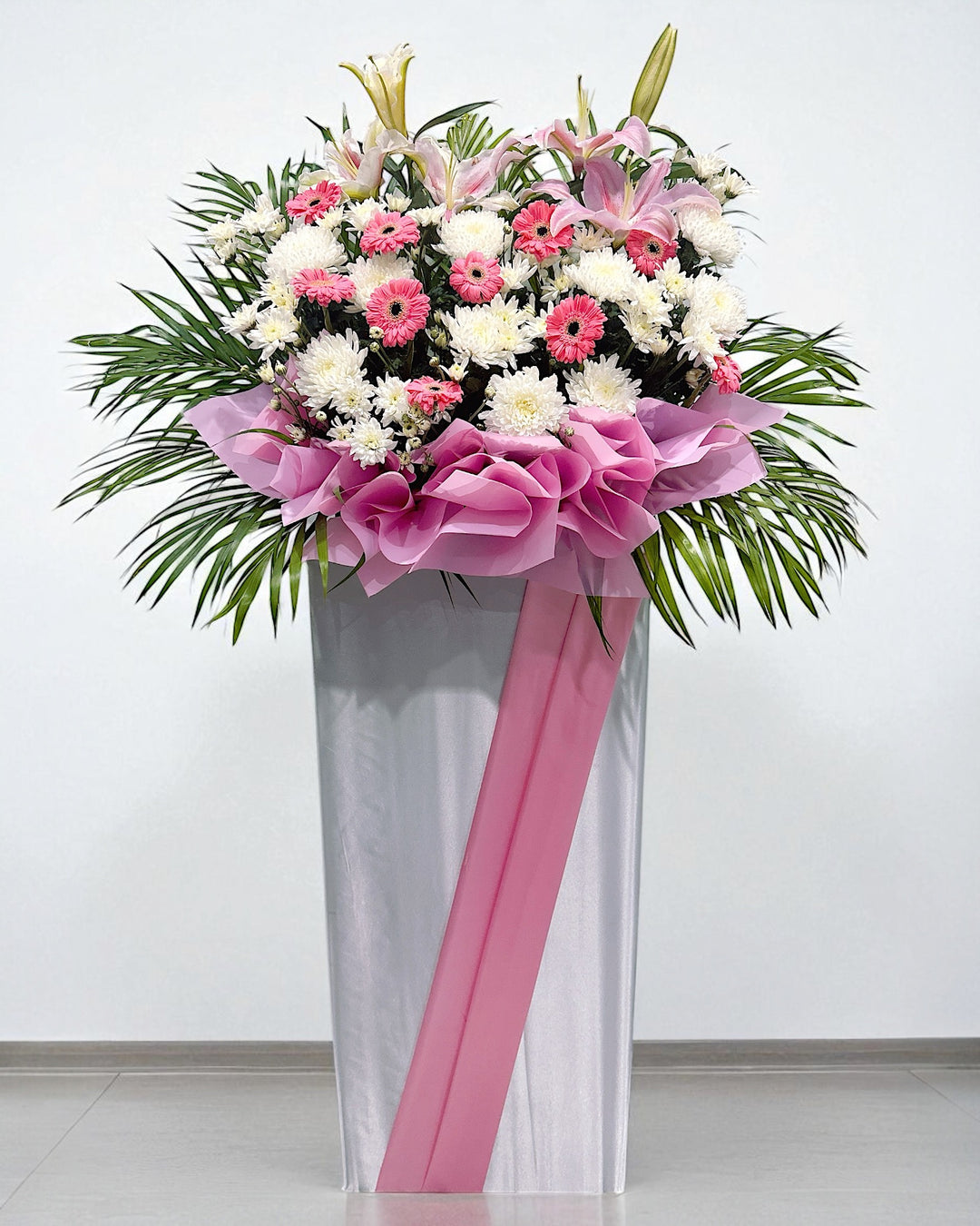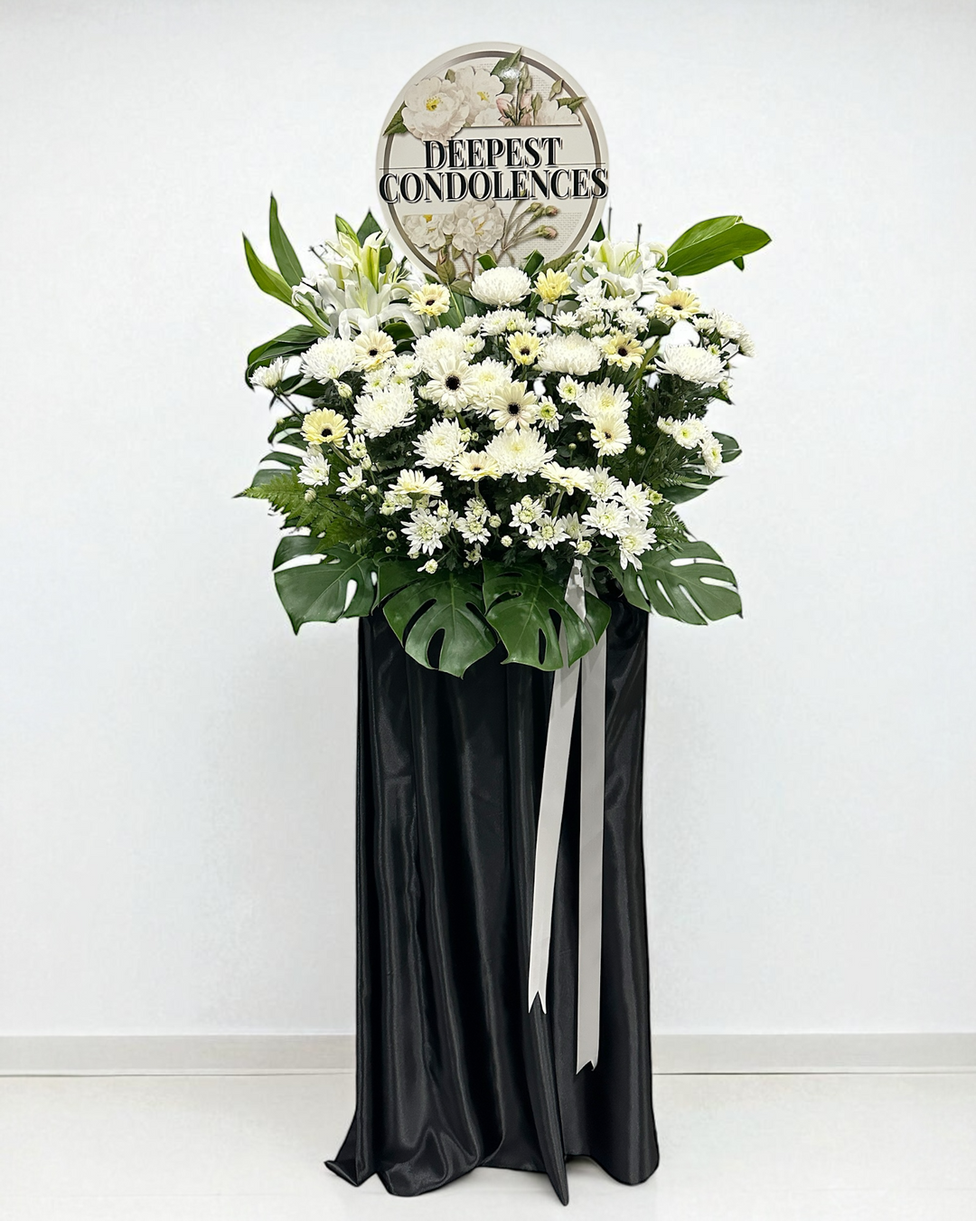 For urgent needs, we provide reliable same-day delivery for funeral flowers in Singapore on select condolence flower stands and wreaths, ensuring your message of support arrives promptly.